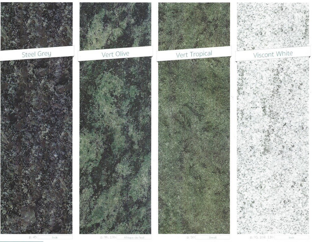 Steel Grey, Vert Olive, Vert Tropical et Viscont White