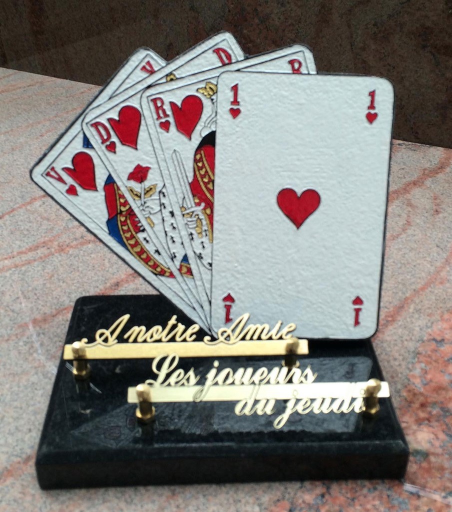 Jeu de carte en granit gravé, découpé et mis en peinture à la main.